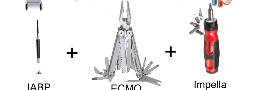 Vi kombinerer ofte ECMO og IABP. I disse situasjonene bruker vi IABP for å avlaste venstre ventrikkel slik at venstre ventrikkel jobber på lavere hjertevolum og lavere metabolisme (1). Dette sikrer at vi ikke havner i en situasjon der hjertet er vedvarende ischemisk til tross for at pasienten er på ECMO. Impella kan brukes på samme måte (2). I tillegg kan Impella og IABP lette avgangen fra ECMO. I motsatt ende av pasientforløpet begge apparatene kan være en måte å kjøpe tid på til vi rekker å legge pasienten på ECMO.
