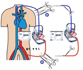 Den prosedyren som vises her er bytte fra èn ECMO-krets til en ny dersom det har kommet luft eller store koagler i den gamle kretsen